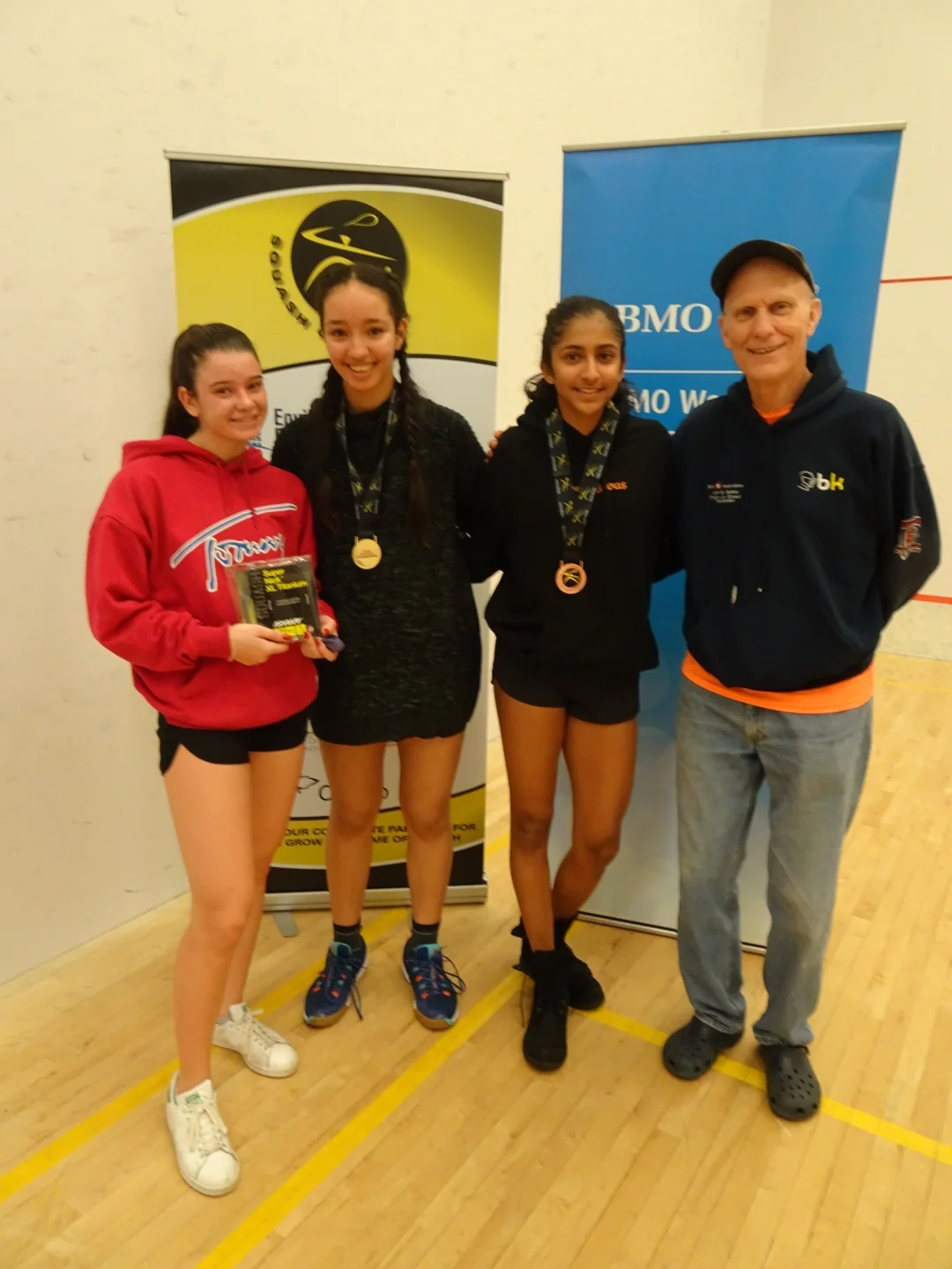 Year after year, the dynamic duo of the Executive Squash & Fitness team, led by Rob Brooks, and tournament sponsor BMO Nesbitt Burns, represented by John Sekhar, put on a seamless Ontario Junior Closed which is the first junior championship event of the squash year. This year was no different with Rob at the helm yet again with his team of Executive Squash volunteers.