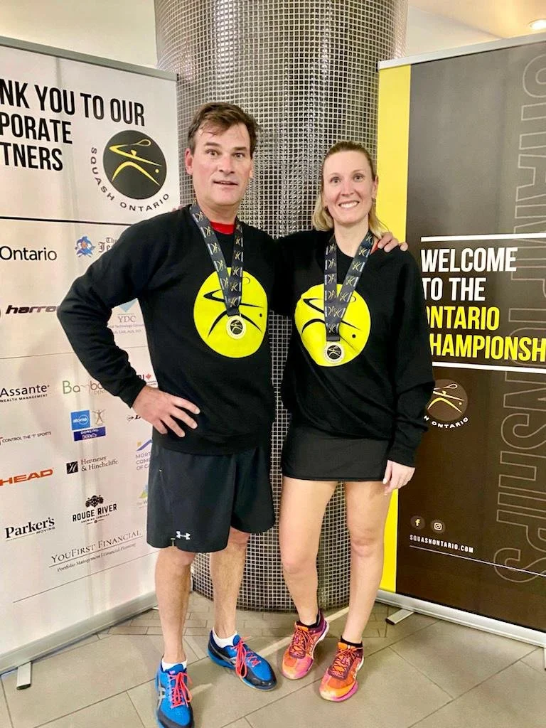 This past weekend was dedicated to the final senior doubles event of the season - the 2022 Hennessy and Hinchcliffe Ontario Mixed Doubles Championships. Kudos to all the teams for taking part and making this event a huge success. We witnessed the men and women come together and enjoy themselves, while playing some competitive squash. This tournament would not have been possible without the support of title sponsor Hennessy and Hinchcliffe (Mark Hinchcliffe), along with the help of our tournament chair Cory McCartney from Mayfair Parkway and tournament referee Robert Dubé.