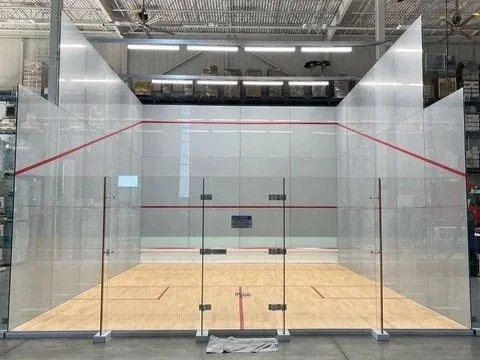 An incredible opportunity is now available to purchase a full glass squash court currently located in Brampton, Ontario. This court has been housed in a private business warehouse; as the business is now relocating, the court is being made available for sale. Notably, the court has seen very minimal use over the past three years, making this a rare chance to acquire a glass court in great condition.
